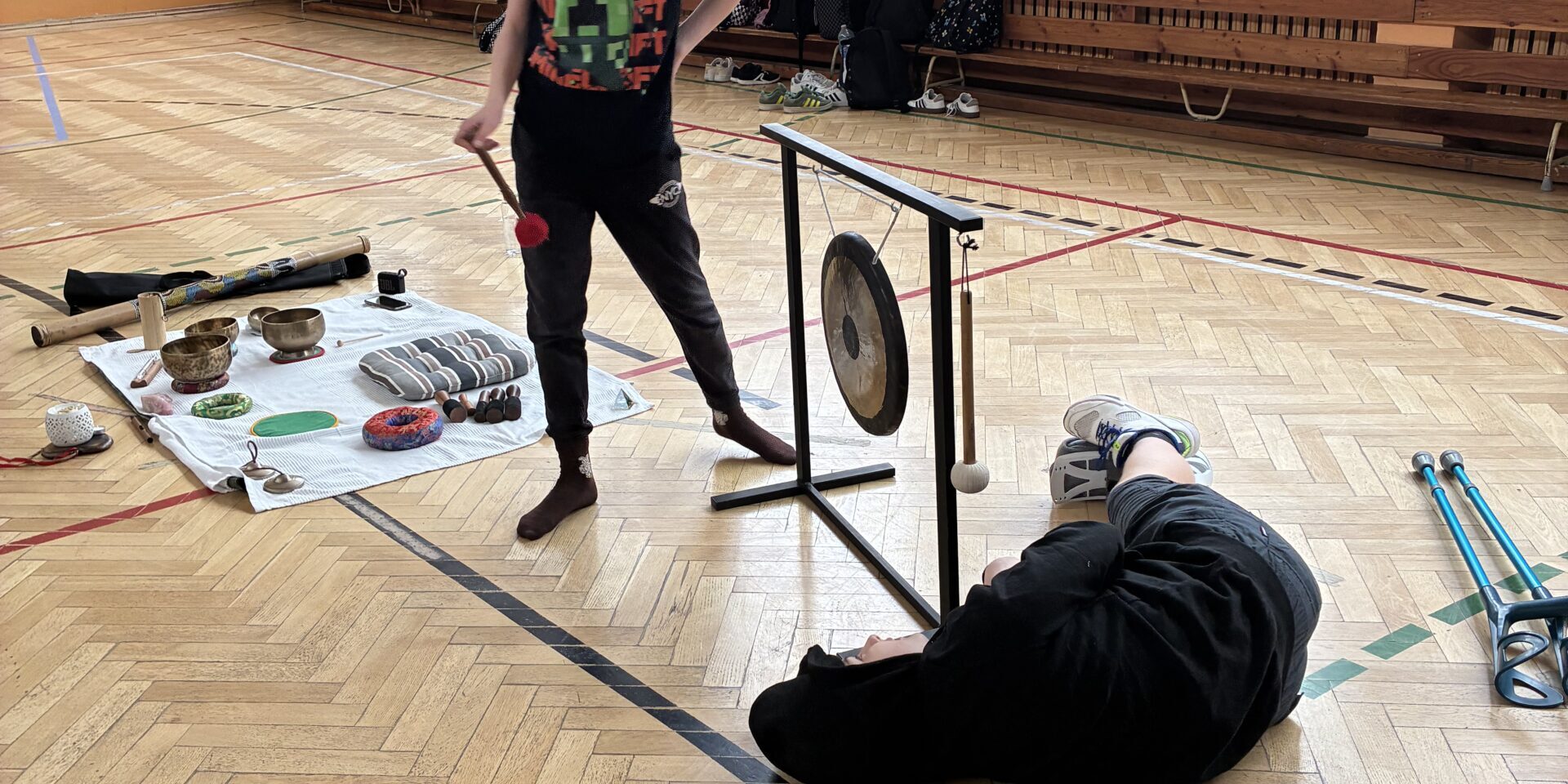 Gościliśmy na zajęciach mamę jednego z naszych uczniów, która przeprowadziła dla nas profesjonalne warsztaty technik oddychania relaksacyjnego oraz koncert mis tybetańskich.